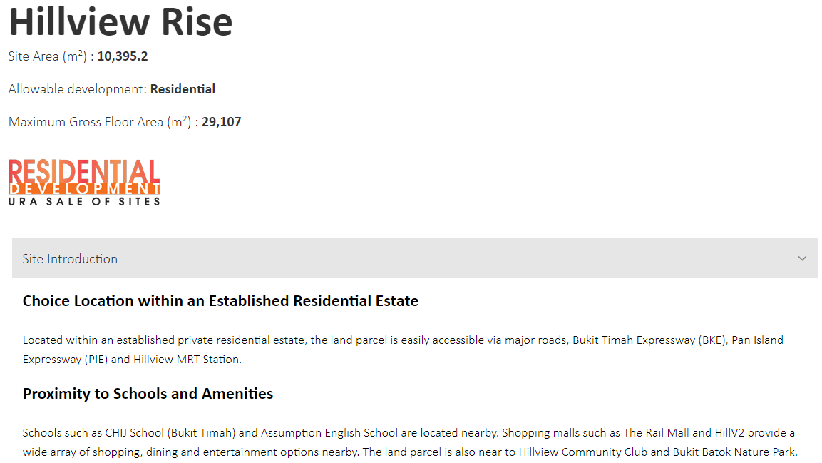 Hillview Rise Residences is a 99 Years development located along Hillview Avenue & Hillview Rise in D23 - Bukit Batok/Bukit Panjang of Singapore. This development sits on a GLS land parcel next to Midwood (U/C). Hillview Rise Residences is estimated to house 335 units when completed, and the expected TOP is 2027, if the tender is awarded in 2022.