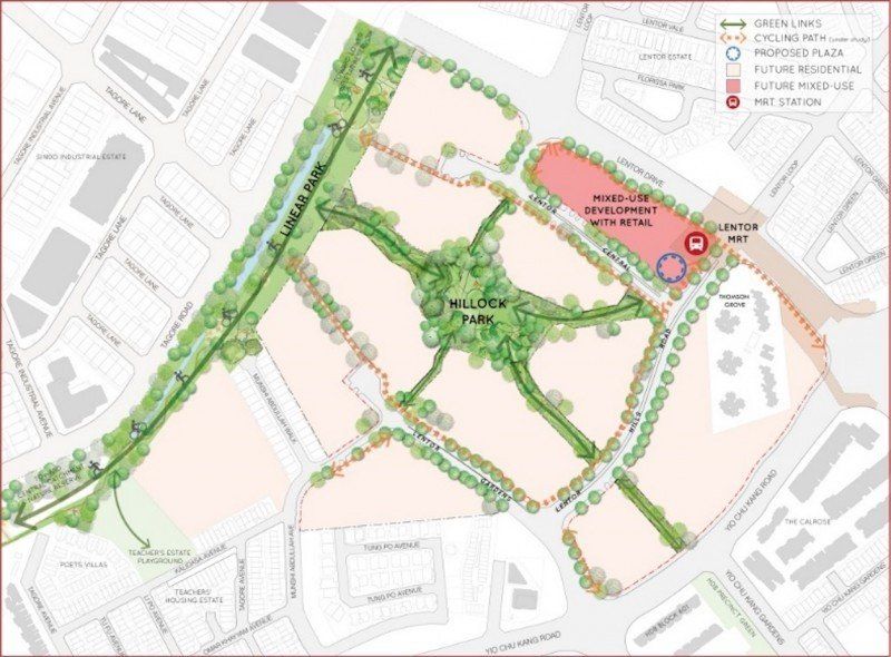 Lentor Hills Estate is envisioned as a pedestrian-friendly neighbourhood amidst lush greenery with excellent connectivity to public transport. Within this estate, there will be a mix of high-rise, medium-rise and landed housing options. The proposed Lentor Central development will be the gateway to Lentor Hills Estate and the future Hillock Park. The development will be lushly landscaped to enhance the overall sense of greenery in the area and include an attractive living environment.