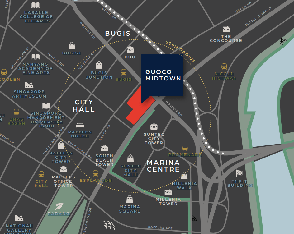 Midtown Bay is situated at one of Singapore’ busiest in the Core Central area, Beach Road. The integrated development is within walking distance to multiple MRT stations, Hotels, Offices and shopping malls. Guoco Midtown Bay location offers amazing view of the Kallang Basin and the Southern Sea or the vibrant city centre.