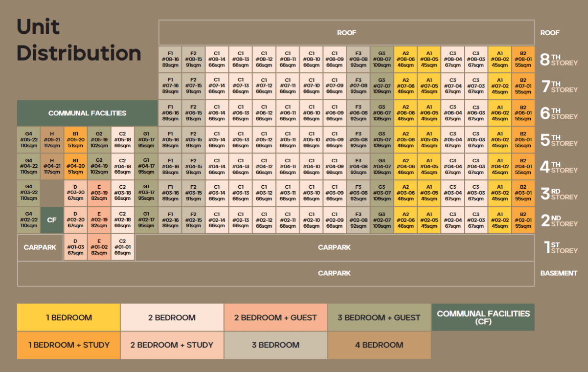 | 3 Bedroom + Guest | G1 | 1,023 | 4 |